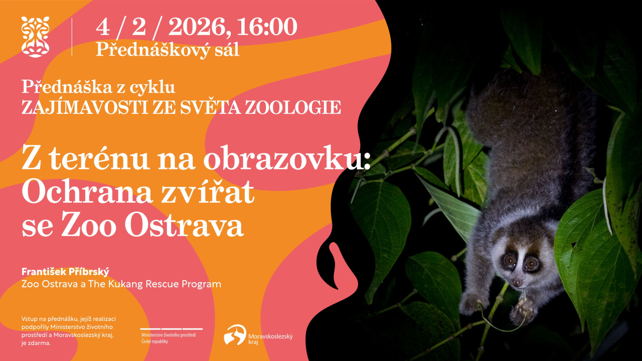 Záchranný program Kukang patří od svého vzniku v roce 2014 mezi klíčové in situ projekty Zoo Ostrava. Přednáška nabídne pohled na to, jak se programu na Sumatře daří v posledních letech – od náročné terénní ochrany a spolupráce s místními komunitami až po silné příběhy konkrétních zvířat, kterým se podařilo dát druhou šanci. Druhá část vás zavede přímo do zákulisí natáčení dokumentárního seriálu Zoo Ostrava Na chvíli na Zemi: Zoo – moderní ochránce zvířat. Nahlédnete pod pokličku filmování ochrany přírody v tropickém terénu, dozvíte se a chybět nebudou ani „veselé“ historky z natáčení doplněné ukázkami jednotlivých dílů. Závěrem představíme další in situ projekty, které Zoo Ostrava aktuálně podporuje, a ukážeme, jak velkou roli v ochraně ohrožených druhů hrají sami návštěvníci zoo. Přednáška je určena všem, které zajímá moderní ochrana přírody, propojení zoologických zahrad s terénem i příběhy, které stojí za ochranářskými úspěchy i nezdary. Přednášet bude František Příbrský, ředitel Záchranného programu Kukang a vedoucí oddělení in situ ochrany přírody Zoo Ostrava.