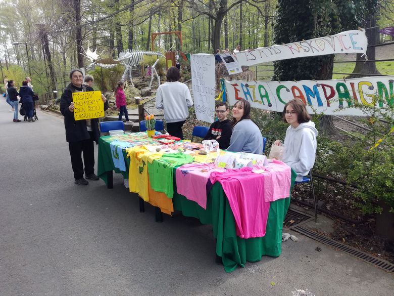 Na nedělním programu zaměřenému na pomoc ukrajinským zoologickým zahradám se podíleli členové Kruhu přátel zoo a několik moravskoslezských škol. V zoo měly své stánky děti a jejich paní učitelky ze ZŠ Záblatí v Bohumíně, ZŠ a MŠ v Raškovicích a Školička U lesa v Ostravě-Michálkovicích, v nichž zájemcům nabízely vlastnoručně vyrobené předměty – výrobky z keramiky, dárečky ke Dni matek, ozdůbky z korálků a peří, ozdobné kolíčky, zapichovátka, obrázky, malované plátěné tašky, trička a další předměty. Zájemcům také malovaly obličeje. Výtěžek z prodeje, který činil téměř 10 000 Kč, poputuje na speciální sbírkové konto pražské zoo, kde se střádají peníze také z dalších českých a slovenských zoo i jednotlivců na podporu zoologických zahrad na Ukrajině. Děkujeme všem, kteří se do akce zapojili!