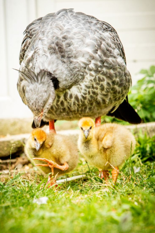 Protože náš pár čájí dlouhodobě harmonizuje a je schopen mláďata úspěšně odchovat spolehlivě, chtěli jsme mu opět nabídnout možnost projevit/uplatnit rodičovské instinkty. Proto jsme se dohodli s kolegy v děčínské zoo, kde pár snesl čtyři vejce, že dvě z nich podložíme našemu páru. Vejce z Děčína byla po převozu inkubována v líhni a páru byla podložena těsně před vyklubáním. První mládě se vylíhlo 19. června 2025, druhé pak 22. června. Oba ptáci se opět projevili jako vzorní rodiče a o mláďata se od začátku skvěle starají. Střeží je a vodí za potravou. První týdny probíhal odchov v zázemí, tento týden jsme celou rodinu přestěhovali do voliéry La Pampa, kde je mohou návštěvníci vidět i slyšet. Čáje jsou pověstné svým pronikavým hlasem.