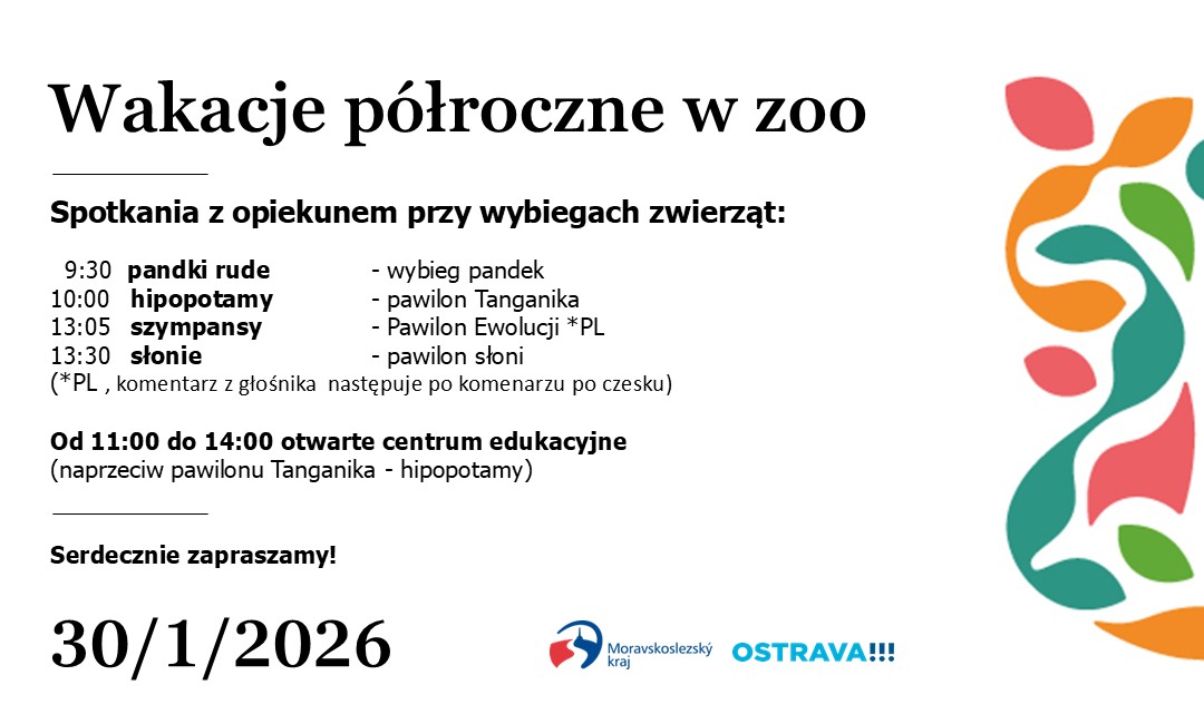 W dniu 30 stycznia zapraszamy wszystkie dzieci z opiekunami na wakacje półroczne do Zoo Ostrava.