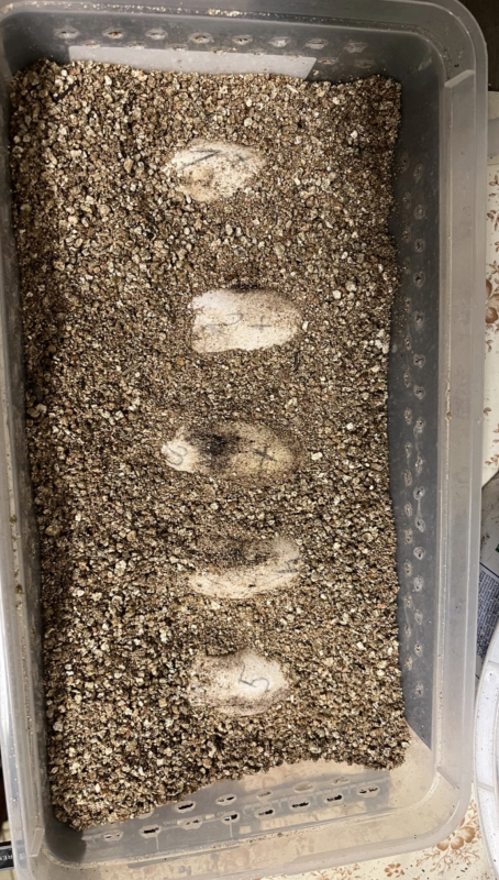 W drugiej połowie czerwca 2025 roku samica przestała przyjmować pokarm, ale sprawiła wrażenie „nadętej”. W pierwszym tygodniu lipca zaczęła przemierzać ekspozycję i grzebać w podłożu w poszukiwaniu odpowiedniego miejsca do złożenia jaj. Dlatego samca przeniesiono do zaplecza. W końcu 14 lipca samica tym samym miejscu co w poprzednim roku wykopała wykopła gniazdo o głębokości 1 m. Tylko w gnieździe o odpowiedniej głębokości, temperaturze i wilgotności może dojść do prawidłowego rozwoju jaj. 5 jaj o długości 7,5 cm i masie około 66 g opiekunowie umieścili w wylęgarni. W dniach 25 i 26 stycznia 2026 r. wykluły się 2 młode warany papuaskie o masie 50 g. Trzy jaja nie rozwijały się prawidłowo.
